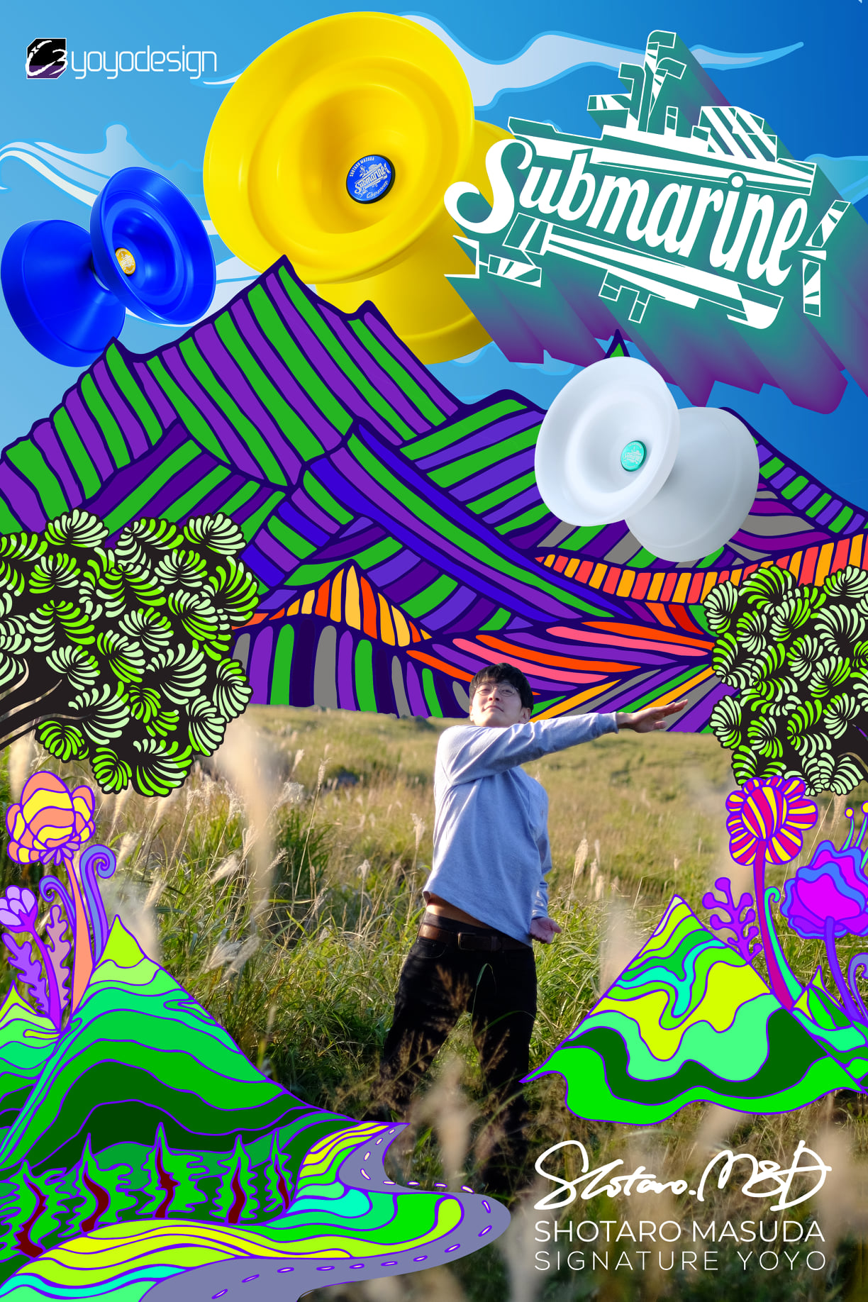 2021年には、その特異なセッティングも通常のセッティングも可能にした自身のシグネチャーモデル、サブマリンが誕生。ユニークなヨーヨーから繰り出される、従来のオフストリングの枠組みにはまらない独創的なトリックは、観客を驚かせるだけでなく、同じオフストリングプレイヤー達からも評価されている。